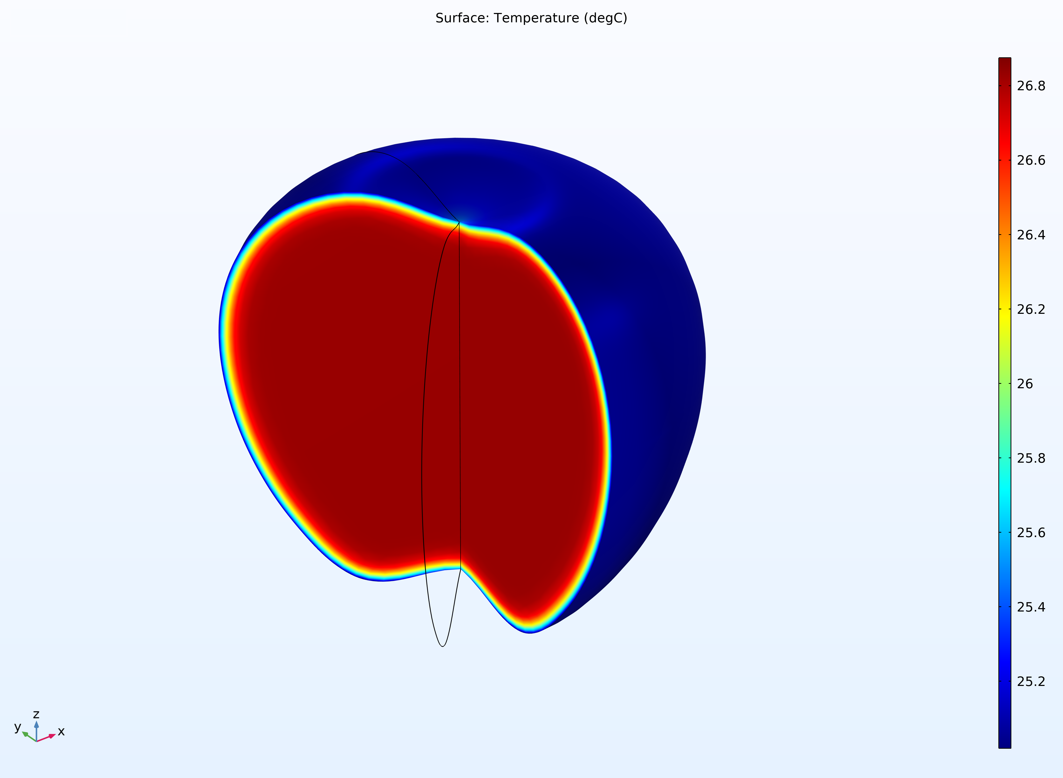 The Coldtivate mobile app provides data-driven forecasts on the freshness of produce in a cold room. These forecasts are relayed from a simulation app (Figure 2), which Empa built with the COMSOL Multiphysics® software and its built-in Application Builder.