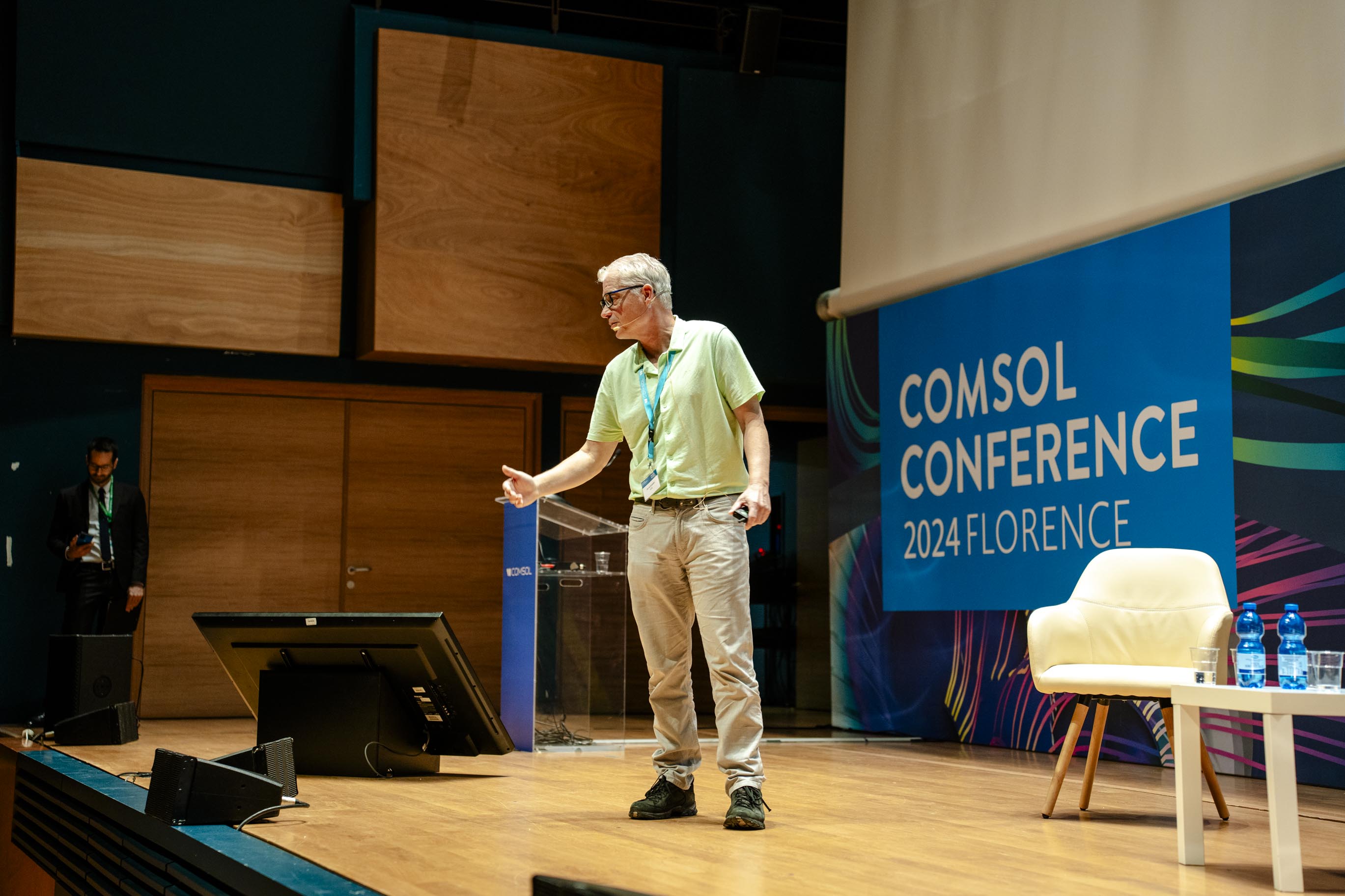 Engineers and researchers from industry and academia gathered at the COMSOL Conference 2024 Florence to meet in person, exchange ideas, and gain inspiration from each other. Through keynote talks from industry leaders, presentations by invited speakers, and 120 posters on display, attendees learned how modeling and simulation is being used in the automotive, food & beverage, semiconductor manufacturing, and electronics industries, among many others. Here are the highlights from the COMSOL Conference 2024 Florence, including a photo gallery at the end of the blog post!