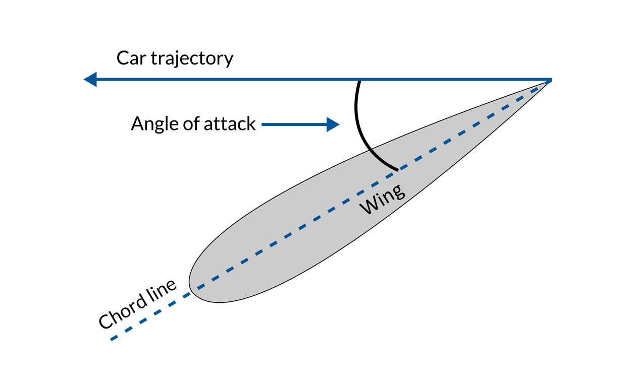 The core component of DRS is the adjustable wing, which we shall refer to here as the “DRS flap”. The DRS flap can pivot between two positions, one for high downforce and one for low drag. When activated, the DRS flap rises to reduce the angle of attack, which is the angle between the chord line and the oncoming airflow or the trajectory of the car. This change decreases the downforce generated by the wing, which in turn reduces aerodynamic drag. With less drag, the car experiences less air resistance, allowing it to reach higher speeds on a straight. Motorsport engineers estimate the speed increase to be between 10–12 km/h (6.2–7.5 mph) during DRS operation.